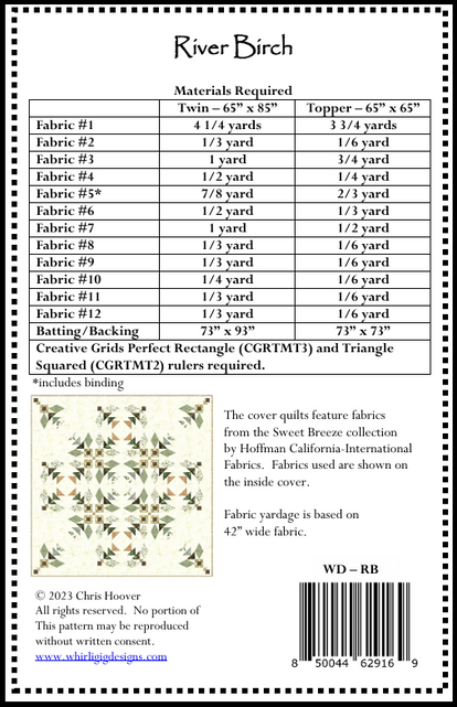 Two sizes (65 x 85, 65 x 65), Creative Grids Perfect Rectangle (CGRTMT3) and Triangle Squared (CGRTMT2) rulers required.